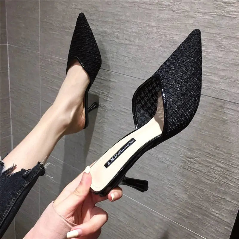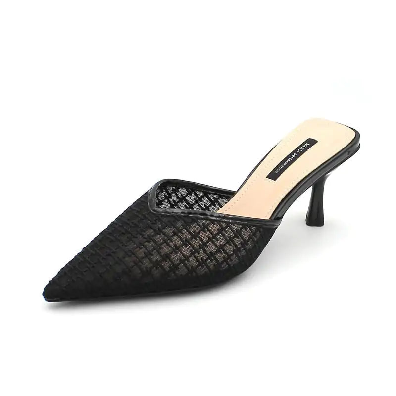 With a sleek pointed toe and chic kitten heel, these flats elevate any outfit, transitioning effortlessly from casual to professional. Crafted from high-quality lace and knit materials, they’re breathable and comfortable for all-day wear. The slip-on, backless design adds a timeless, fashionable touch.