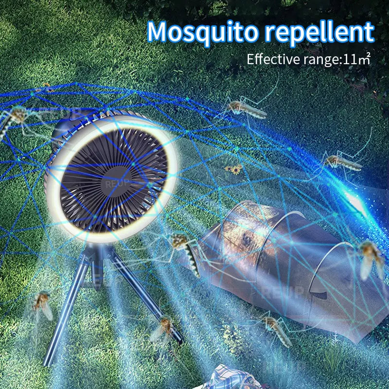 A portable camping fan is a versatile device designed to provide cooling and air circulation during outdoor activities such as camping, hiking, or picnics.  The foldable tripod design ensures stability and portability, allowing you to easily set up the fan wherever you need it. This feature is especially useful when camping or in situations where you don't have a flat surface to place the fan on. The fan offers three adjustable wind speeds, allowing you to customize the airflow to your liking. Additionally, it has a low noise level, generating sound below 20 decibels, ensuring a quiet and peaceful environment.Specification:Battery Life: About 35 hours for 1st gear, 23 hours for 2nd gear, 11 hours for 3rd fanCharging Time: About 4.5 hoursRated Input: DC5.0V/2.0AWorking Current: 0.3-1ARated Power: ≤4WHost Material: ABS/PP/silicone/electronic componentsTripod Material: Silicone/Aluminum Tube