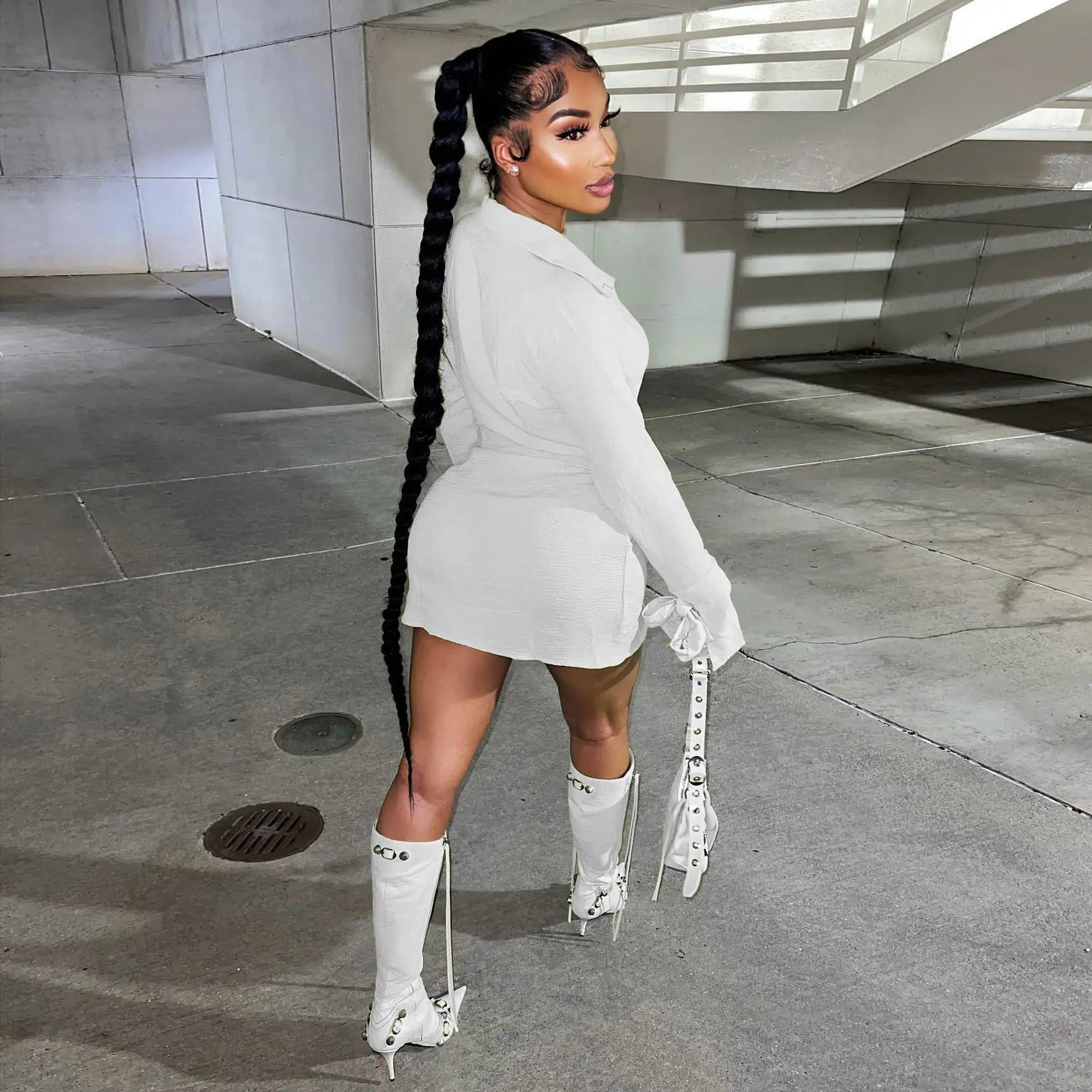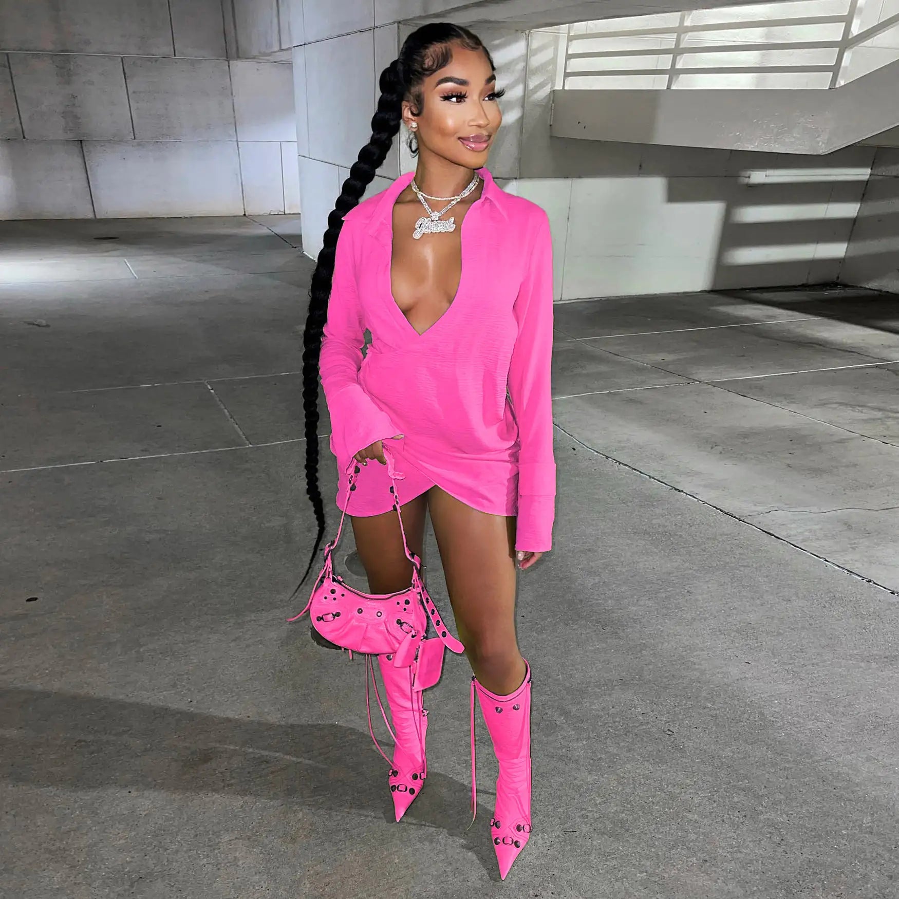 Introducing the Take Me Out Dress! This stylish dress is perfect for weekday cocktails or social gatherings with friends. Featuring a collared neckline, deep V-neck, and long sleeves, this chic dress provides coverage while also offering just the right amount of sophistication. Best of all, its wrap front design and mini/above knee length provide an extra pop of flattery that will make you standout in any room. Crafted from polyester fabric, it's lightweight and soft to the touch while subtly contouring your curves with its regular fit. Whether you're enjoying a night out or attending a formal event, this Happy Hour Plunge Mini Shirt Dress is guaranteed to turn heads!