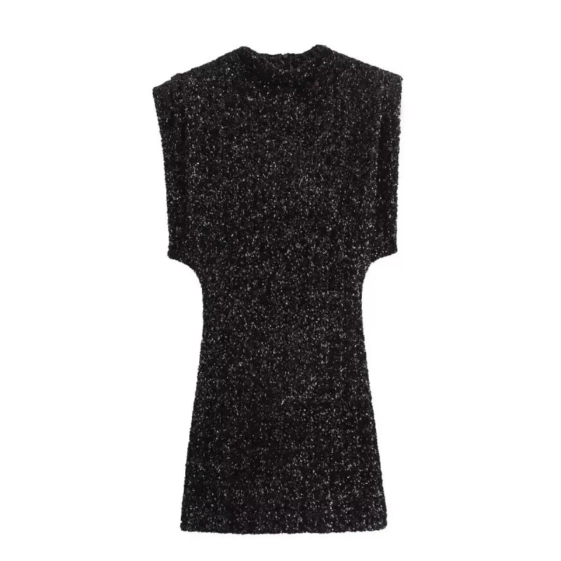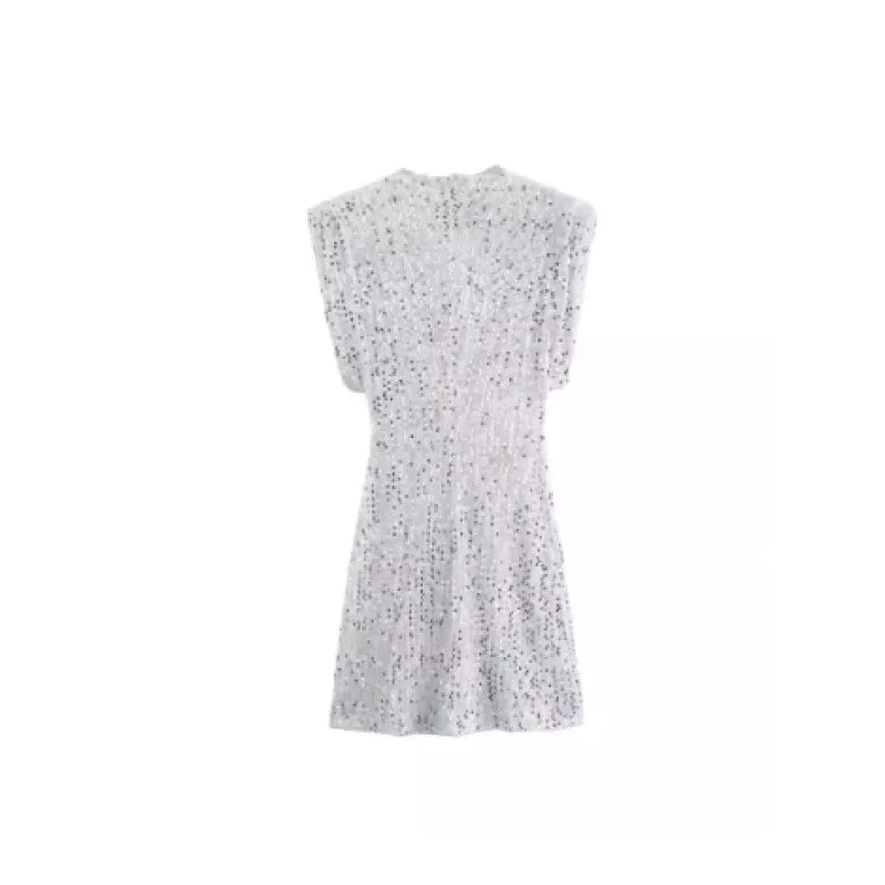 Elevate your wardrobe with this chic mini dress featuring padded shoulders and delicate bead embellishments. Designed for casual elegance, it offers a blend of comfort and style, making it perfect for various occasions.